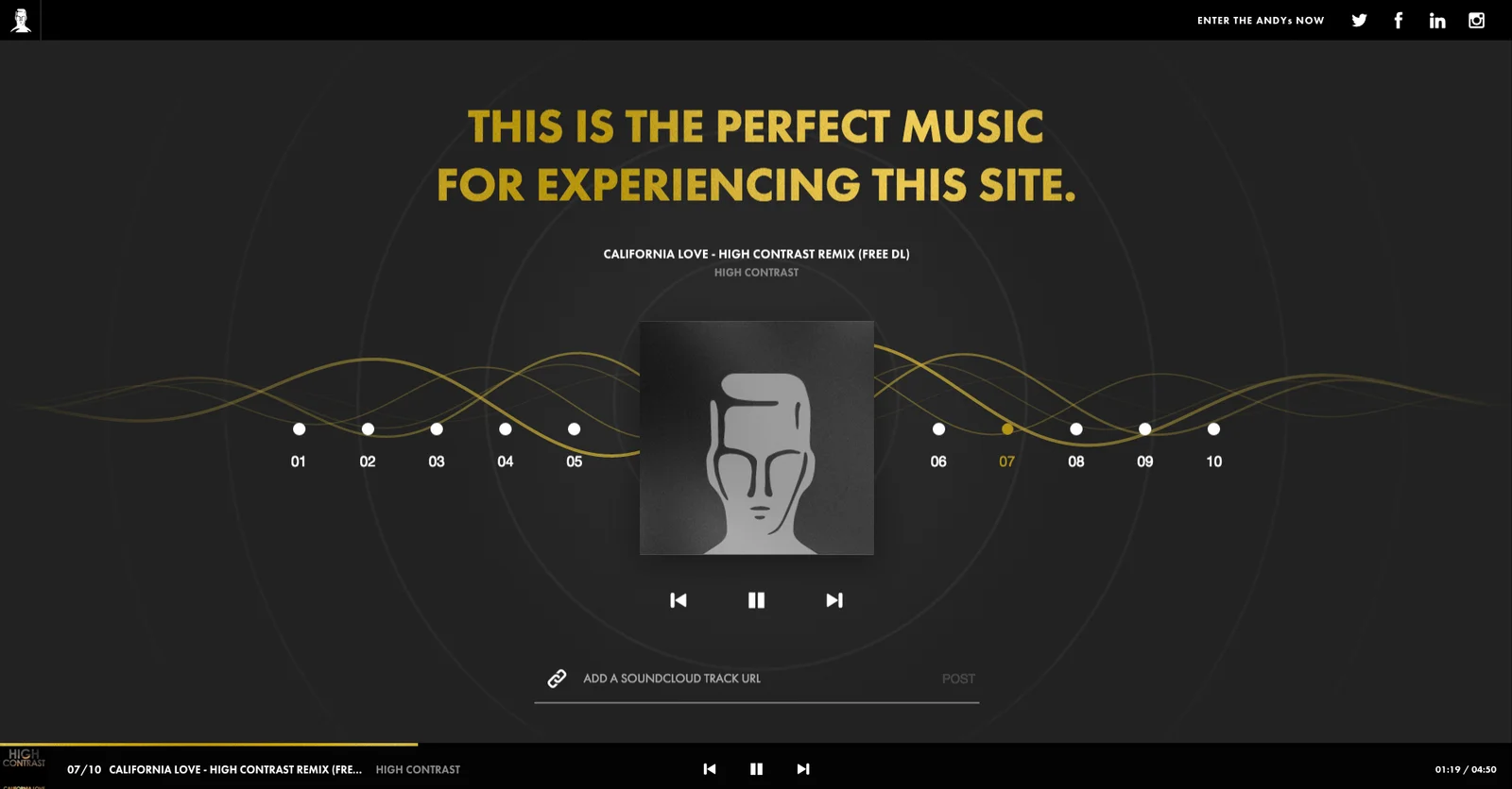 The Perfect Musics section is a good example of machine-learning but with an entertaining outcome. The user submits his favorite song from SoundCloud, and it’s broadcasted to other site visitors. Depending on how long each person listens to the same song, the site’s back-end determines its popularity and stores the song in the database for new visitors to hear later.