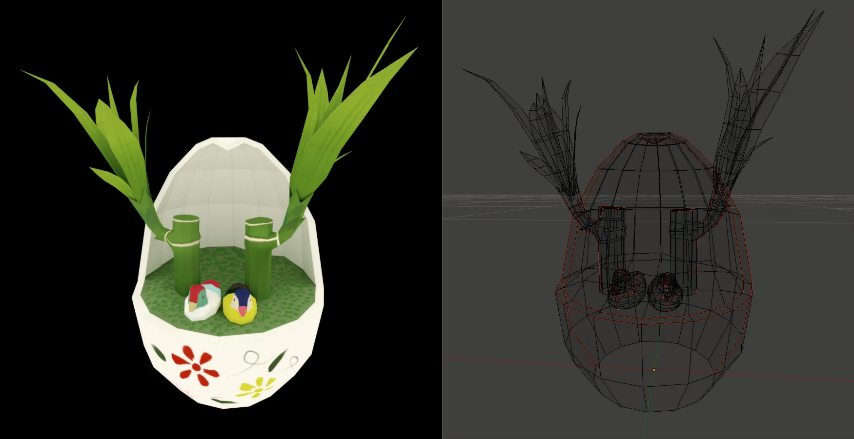 The feng shui game’s art style was originally planned to have cartoonish, low-polygon virtual environments. With Blender, objects are modeled and textured fast.