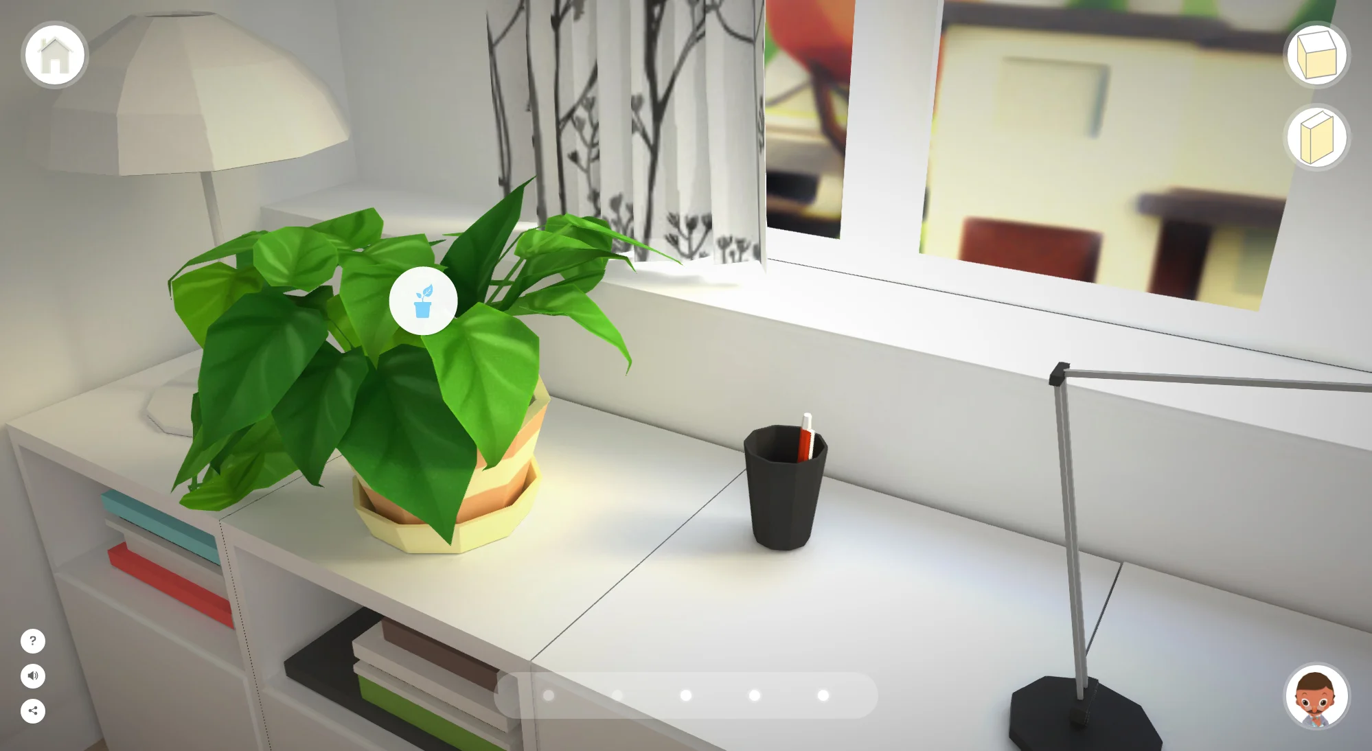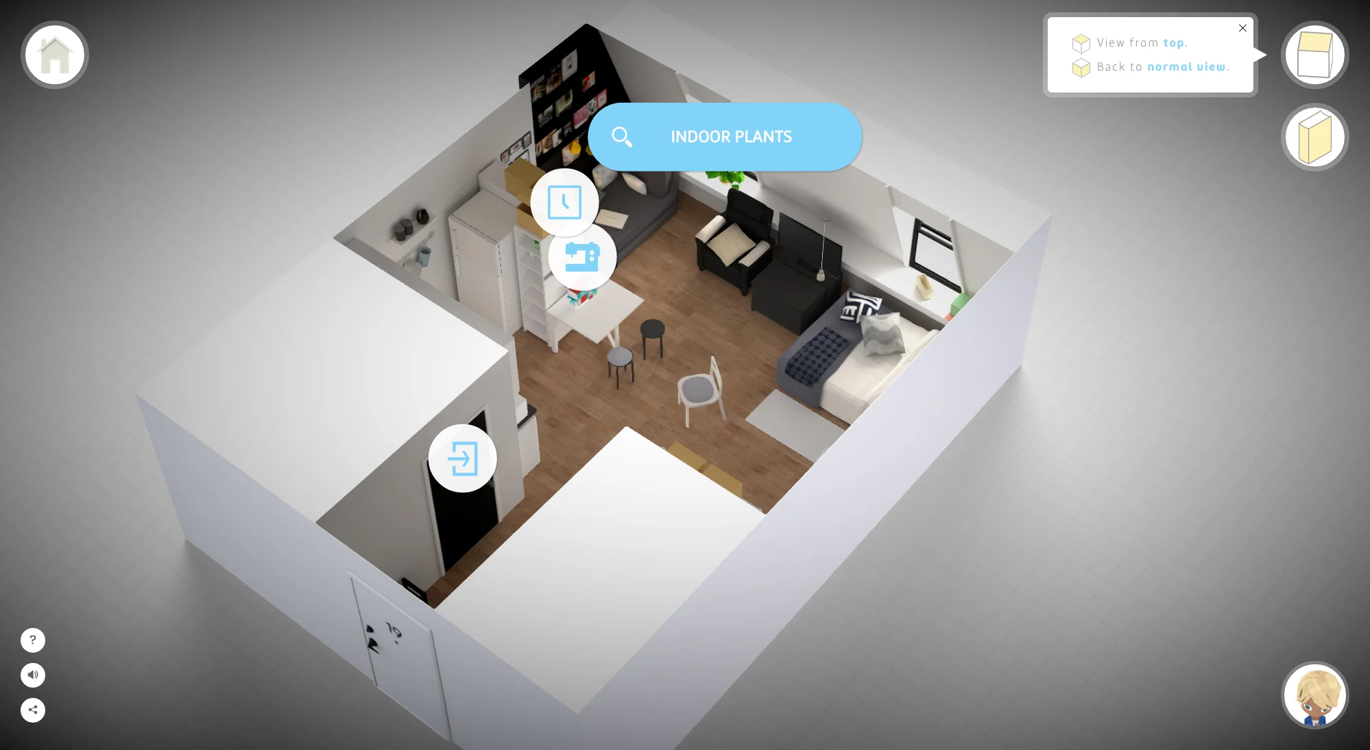 To make sure the user explores the scene, the top-down isometric camera mode allows him to view the full picture of the current floor.